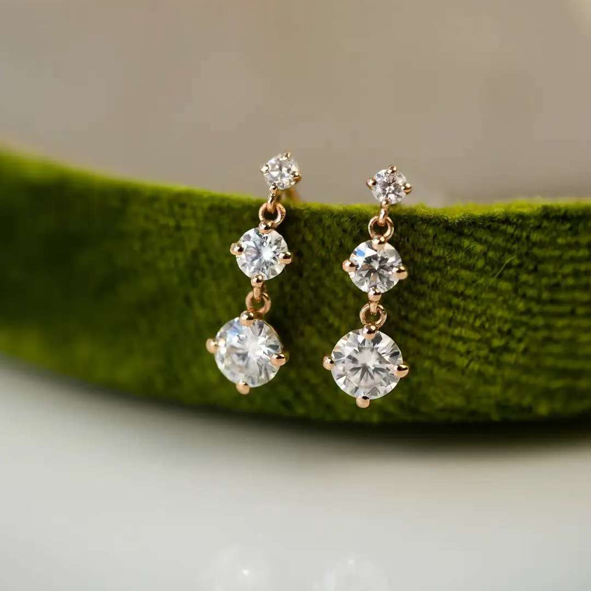 Inspired by falling stars and elevator-lit skylines, our Shine-Step Mini Drops turn gravity into glitter. Four FG/VS lab-grown diamonds graduate from a flush stud to a free-swinging finale, each stone hand-set on a micro-hinge bar that sways with every move. A slim post keeps the profile sleek and mask-friendly, while a secure friction back locks the light in place. Wear them solo for subtle motion, layer with huggies for a constellation look, or gift them as tiny meteors of daily magic.
