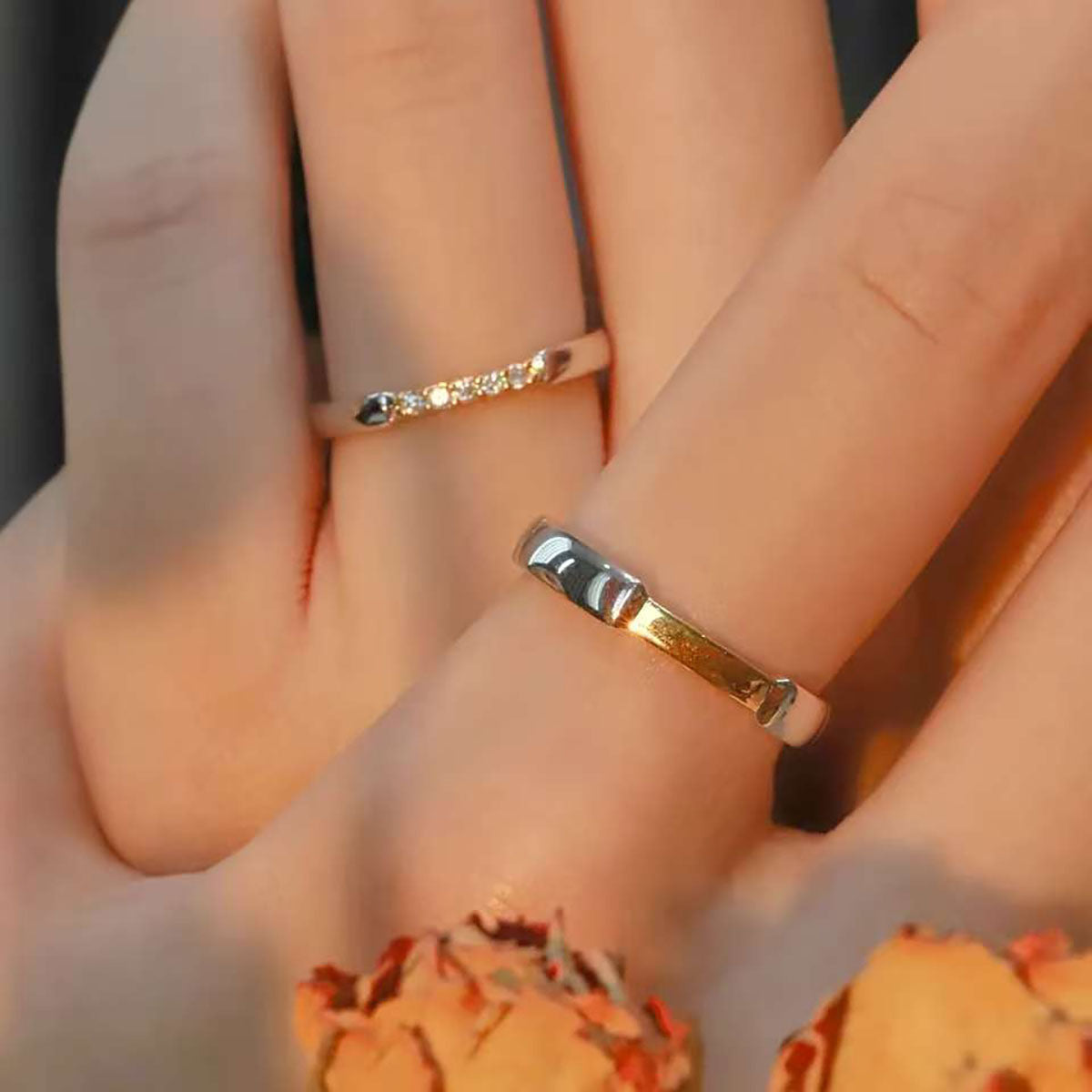 For Him/Her: A sleek, matching band, perfectly mirroring the two-tone aesthetic, creating a harmonious and unified look without diamonds for a clean, understated appeal.
